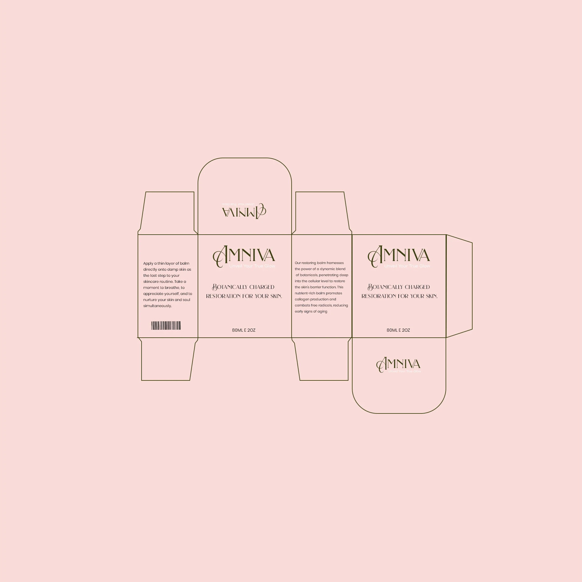 Amniva is a natural skincare brand designed around gentle formulas and a calm visual identity. The branding uses a peach and beige palette to reflect softness, clarity, and a light self-care experience. The project covers the complete process from brand concept to final packaging, including logo development, color system, typography, product labels, and box designs. The aim was to create a simple, trustworthy, and nature-inspired look that matches the brand’s focus on botanical care and everyday usability.